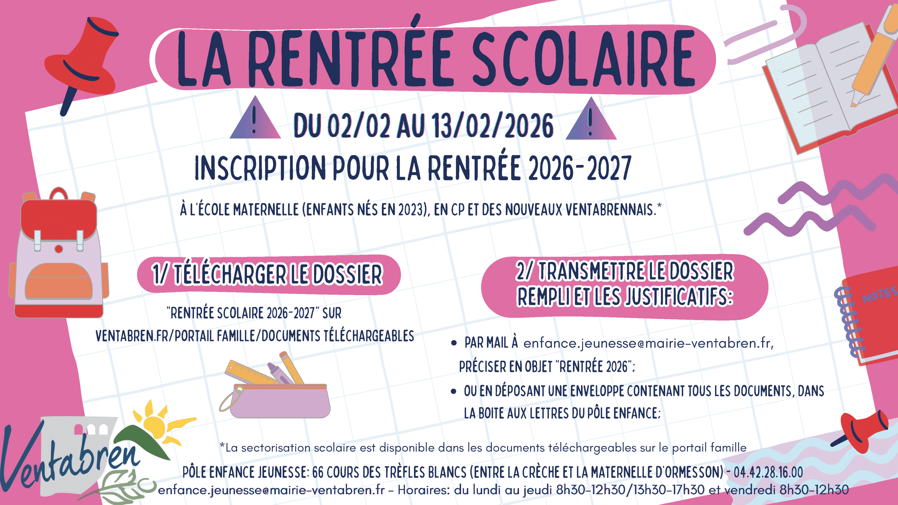 INSCRIPTIONS POUR LA RENTRÉE SCOLAIRE 2026-2027